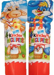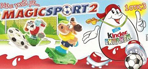Aus den Vereinigten Arabischen Emiraten stammt diese Sonderverpackung. Sie beinhaltet ein Ü-Ei, 4 Tafeln Kinder Schokolade, ein Radio mit Taschenlampe, Batterien und Kopfhörer! Das rechte Bild zeigt zwei 4er Packs aus Tschechien. Das erste ist von Wehnachten 2007 und das Oster 4er Pack von 2008. Das Bild zeigt zwei 4er Packs, die in Ungarn rausgekommen sind. Die gleichen Oster 4er Packs sind in Polen erschienen, nur mit polnischer Aufschrift. Anscheinend gibt es keine besonderen Figuren in den 4er Packs. In Griechenland gibt es dieses 3er Pack der Magisch Sport 2 Serie. Pro 3er Pack wir eine Magic Sport 2 Figur garantiert Das Bild zeigt zwei Figuren der neuen Barbie FAIRYTOPIA Serie aus dem Maxi Ei aus Italien. Zu bekommen ist der ganze Satz in dieser [eBay Auktion], wo alle 5 Figuren zu sehen sind. Im Eierlei Shop können wie die FAIRYTOPIA Figuren aus dem italienischen Ü-Ei anbieten. [Zum Eierlei Shop]