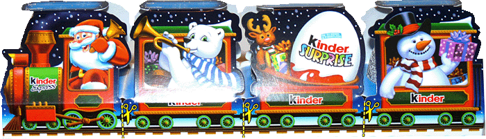 Aus Kanada kommen diese schönen Weihnachtsachen, die wir Euch vorstellen möchten. Links geht es los mit dem Nikos / Weihnachtsmann aus Ü-Ei Schokolade. In der Figur steckt eine Ü-Ei Kapsel, genau wie bei dem deutschen Weihnachtsmann. Die Tannenbaum- verpackung rechts enthält zwei Ü-Eier. Diese Eisenbahn "Kinder Express" ist sehr gut gelungen. Es ist ein 4er Pack Ü-Eier. In Kanada gibt es diesen Adventskalender von Ferrero. Der Kalender ist kein reiner Ü-Eier Kalender. Er ist vergleichbar mit dem deutschen Kinder-Mix Kalender. Ein kleiner Wermutstropfen ist, dass es keine Figurenserien in den schönen Weihnachtsachen gibt. Danke an Wolfgang M. für die News und schöne Grüße aus Deutschland nach Kanada.