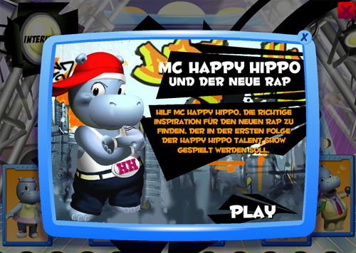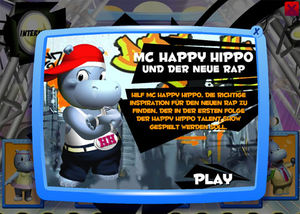 Die erste Information war, das Musik auf dem USB Stick sein soll. Die Rede ist von der Sonderfigur "DJ Hippo". Diese Figur kann auseinander gezogen werden, wobei in einer Hälfte ein USB Stick integriert ist. Um so mehr waren wir überrascht, dass viel viel mehr aus dem Stick als nur Musik kommt. Es geht los mit dem ersten Bild, wo die Sprache ausgewählt werden muss. Als Zweites kommt ein sehr gut animierter Countdown zum Start der Talent Show. Dann stellt sich die Hauptfigur vor Namens "Toni Turntable" und nicht wie angenommen "DJ Hippo" vor. Toni Turntable stellt danach "Maxi M! Macher" vor (Die 1-Mann-Juri). Nun können die Figuren angeklickt werden und werden vorgestellt. In den beiden Scheinwerfern steht "Internet" und "Spiele". Über den Internet link kann der USB Stick upgedatet werden, was heute aber noch nicht aktiv war. Unter Spiele stehen 3 Spiele zur Auswahl. Jedes Spiel ist eine anderen Figur zugeordnet. Auf dem Bild ist das Spiel von "MC Happy Hippo" und der neue Rap zu sehen. Hier müssen Noten aufgefangen werden. Fazit: Eine komplette Vorstellung der Figuren und die Spiele hatten wir nicht erwartet und sind begeistert.