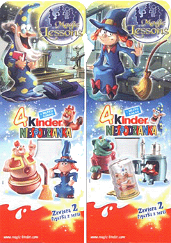 In der Schweiz gibt es das 3er Pack der Les Rebelles de la Foret "JAGD FIEBER". Garantiert wird ein Inhalt der Serie pro 3er Pack. Quelle: [Diese eBay Auktion] In Polen gibt es von den MAGIC LESSONS die beiden links abgebildeten 4er Packs und ein 3er Pack, unten zu sehen. Quelle: [Italoei. at] Dieses 4er Weihnachtspack gibt es in Frankreich. Der Preis pro Pack ist 2,79 Euro. Enthalten sind überwiegen neue Sachen wie die Quallen, die es auch in Slowenien gibt. Danke für die News an "kleinerzwerg"