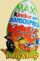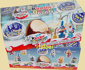Das Bild zeigt ein neues, noch nicht bekanntes Ü-Ei Flugzeug aus Japan. Vom neuen Flugzeug gibt es zwei Ausführungen. Bei diesem eirigen Ü-Ei Flugzeug ist eine Landebahn dabei. Bei der zweiten Ausführung ist die Verpackung minimal anders und die Motive auf dem Ladebahn Puzzle sind andere. Zu bekommen sind die Flugzeuge mit Puzzle für 9,99 Euro sofort kaufen. Ein Bild von der Landebahn ist in beiden Auktionen zu sehen. Direkter Link zu den beiden Flugzeugen: [Version eins] [Version zwei] Das Bild zeigt den Pappanhänger eines italienischen Maxi Eies. In den Eiern sind, wie der Pappanhänger verrät, unter anderem Inhalte von "Daffy & Bugs". Der Preis soll um wahnsinnige 10 Euro liegen. Quelle: [ciram. de] Auf dieser Musik CD gibt es ein Überraschungseilied. Die CD kommt aus Ungarn. Es gibt sogar eine Webseite passend zur CD [kindermeglepetesdal. hu] In England ist die aktuelle Hauptserie "Die Magische Schulstunde" oder besser gesagt "Magic Lesson". Das Bild zeigt ein 3er Pack von zwei Ansichten. Quelle: [italoei. at]