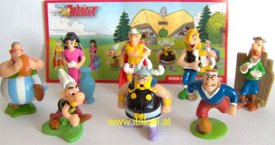 Hier ein Foto vom ersten Figurensatz der Crazy Connection. Auslieferungstermin der Serie ist Mitte August, zusammen mit einer neuen Winx Club Serie. Im Hintergrund sind die Beipackzettel zu sehen. Die BPZ sind mit einem Webcode versehen. Dies ist ein neuer Figuren Satz von Asterix. Die Figuren gibt es in Frankreich. Der Satz besteht aus 8 Figuren. [Zu bekommen in dieser eBay Auktion] Im Eierlei Shop können wir bis zu 50 Asterix Artikel anbieten: [Zum Ü-Eier Shop].