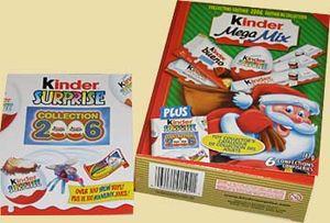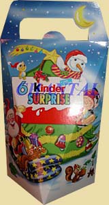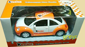 Dieses Kinder Mega Mix kommt aus Kanada. Die Größe ist etwas 13x17 cm. Enthalten ist 1 Ei, 4 Schoko Riegel und 1 Päckchen Bueno. Weiterhin ein Faltblatt, wie abgebildet, mit den 2006er Spielsachen (K04 und K03). Preis zwischen 5 und 6 kanadische Dollar. Danke an Wolfgang M. Bei diesem 6er und 4er Pack handelt es sich um Testware aus Luxemburg. Das 4er Pack rechts mit den Weihnachtswichteln hat ein Dreiecksformat, was auf dem Bild so nicht zu sehen ist. Danke Chantal Dieser Metall VW New Beetle kommt wahrscheinlich aus Hong Kong, so wie die Smarts. Quelle [www. italoei. at] Dieses 3er Pack der SpongeBob stammt aus Russland. Im Eierlei Shop gibt es alle Figuren der Schwammkopf Serie (auch Sandy)! [Link zum umfangreichen Ü-Ei Shop auf Eierlei]