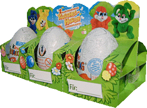 Die Kuschel-Hasen wird es in den beiden 4er Packs und im 6er Pack in Deutschland geben. Von dem 4er Pack gibt es wieder zwei unterschiedliche Layouts. Pro 4er Pack wird ein Hase garantiert. Bei dem 6er Pack werden zwei Hasen garantiert. Das 6er Pack kann auseinandergetrennt werden, so dass die Eier auch einzeln verschenkt werden können. Um dem Geschenk eine persönliche Note zu geben, kann vorne an der Verpackung der Name eingetragen werden.