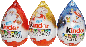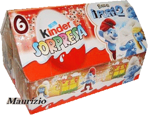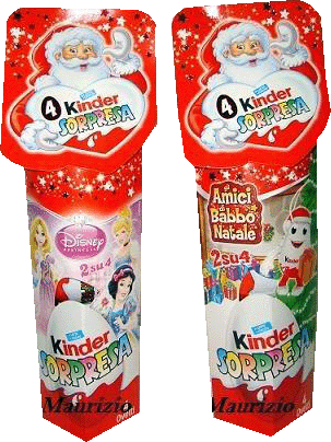 In Italien gibt es diese 3 schönen Ü-Ei Umverpackungen mit weihnachtlichen Motiven. Die Ü-Eier haben eine Öse und können unter anderem an den Tannenbaum gehängt werden. Das Schlumpfhaus unten im Bild ist ein 6er Pack. Das 6er Pack beinhaltet zwei 3er Packungen, wo je 1 Figur garantiert wird, also 2 Schlumpf Figuren pro 6er Pack. Rechts unten zeigt uns das Bild zwei weihnachtliche 4er Packungen von den Disney Prinzessinnen und der Weihnachtsparty.