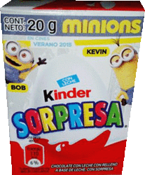 In Mexico gibt es die Überraschungseier überwiegend in diesen 1er Packs. Auf diesem 1er Pack der Minions sind BOB und KEVIN zu sehen. [Live Suche auf eBay nach den MINONS starten]