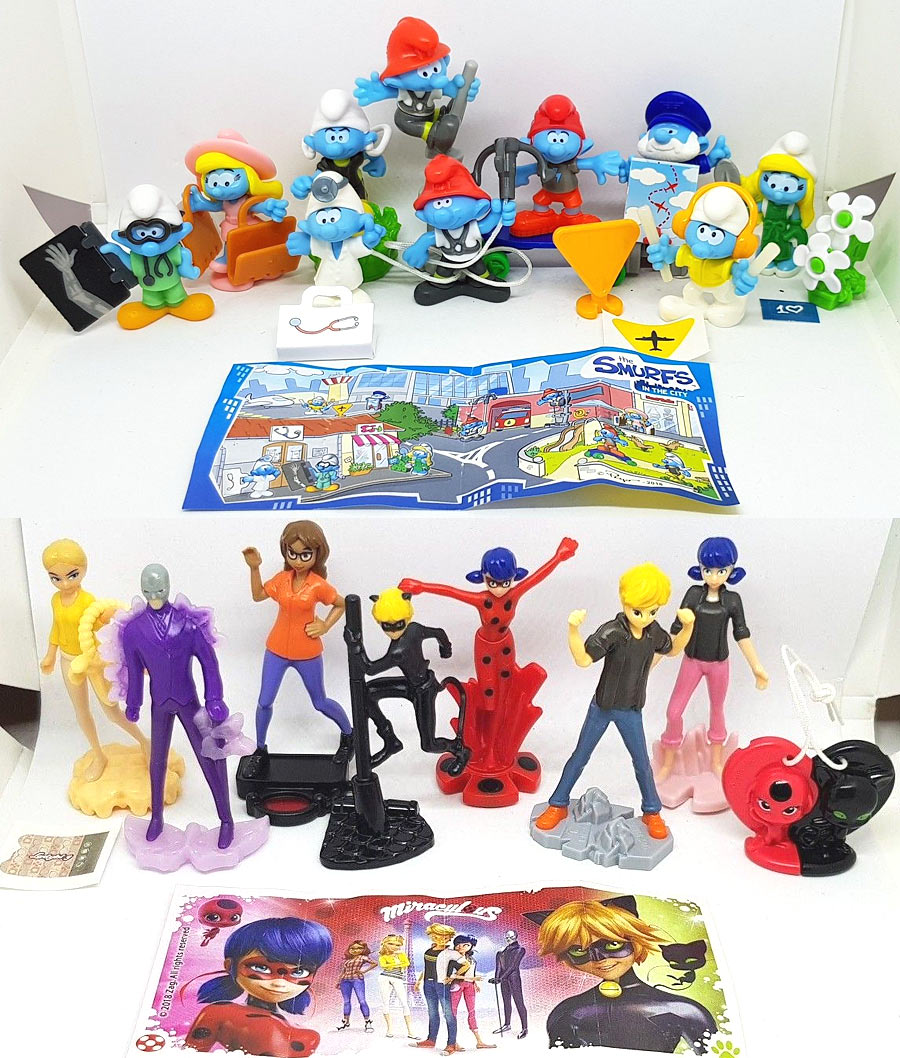 In Österreich sind die ersten 3er Packs mit den neuen Serien rausgekommen. Das Foto rechts, welches vergrößert werden kann, zeigt die neuen Schlumpf Figuren und die "Miraculous - Geschichten von Ladybug und Cat Noir". Bei den Schlümpfen besteht der Satz aus 10 Figuren, die mit viel Zubehör ausgestattet sind. Der Miraculous Satz beinhaltet 8 Figuren und ein Anhänger.