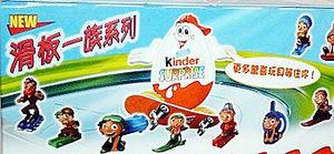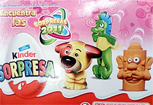 Hier ein 72er Display von den Spring Showers. Das Thekendiplay stammt aus England. In Deutschland wird es den Satz geben mit dem Namen "Die Regenbogen-Strolche". Ein italienisches Werbeblatt zu den neuen Figuren gibt es in diesem [Eierlei Bericht]. Als Hauptserie gibt es jetzt in Hong Kong die Skater Kids. Das Bild zeigt das 3er Pack der Figuren. Eierwiki. de In Mexiko gibt es dieses farbenfrohe 2er Pack. Die Inhalte sind leider aus der uns bekannten Spielzeug Kollektion 2009. Im gleichen Design gibt es auch noch ein 1er Pack aus Mexiko.