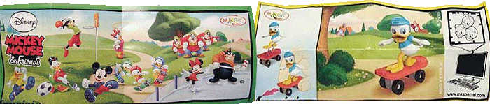 Dies ist das 3er Pack von Mickey Mouse & Friends aus Italien. Auf dem 3er Pack steht eine Figurengaratie, so dass eine Figur pro Packung garantiert wird. Hier sind zwei Beipackzettel von Mickey Mouse & Friends. Die Vorseite zeigt alle 10 Figuren zur Serie. Auf der Rückseite ist die Bauanleitung zur Figur und der Web Code.