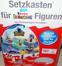 Von den kommenden Monster & Piraten Figuren gibt es wieder einen Setzkasten aus Acrylglas. Der Setzkasten ist eierförmig und als Hintergrundkulisse ist das Meer mit Piratenschiffen zu sehen. Zum bekommen ist der Setzkasten in Real-Märkten.
