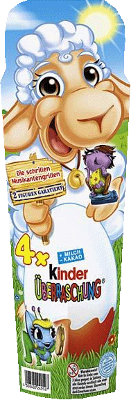 Kurz nach der Gerüchteküche gibt es schon den Beweis, dass die Grillen zu Ostern in die Ü-Eier kommen. Der Satz heißt "Die schrillen Musikantengrillen". Die 4er Packs zeigen 6 unterschiedliche Figuren aus der Serie. Pro 4er Pack werden zwei Grillen garantiert.