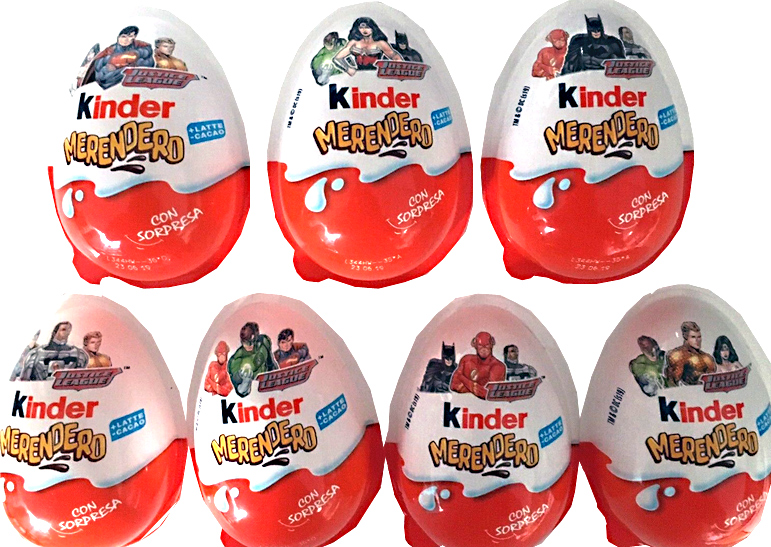 Das Bild zeigt uns Merendero Eier wo deutlich zu erntnehmen ist, dass Justice League Figuren drin stecken.