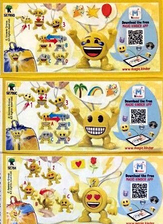 In den nächsten Wochen sollen die ersten Kinder Joy Eier ausgeliefert werden. Diesmal ist eine Emoji Serie enthalten. Das Bild zeigt uns drei Beipackzettel mit Emojis.