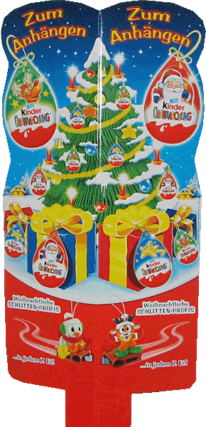 Der Kantenschoner zeigt, dass es die "Weihnachtlichen Schlitten-Profis" in diesen Ü-Eiern gibt. Damit sind die Schlitten-Profis im Adventskalender, im 4er Pack und in diesen schönen Ü-Eiern. Diese Ü-Eier können am Tannenbaum oder ans Geschenk angehängt werden. Unten auf dem Kantenschoner sind zwei Schlittenprofis zu sehen. Danke an Dina. "Angebote bei eBay"
