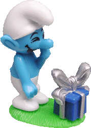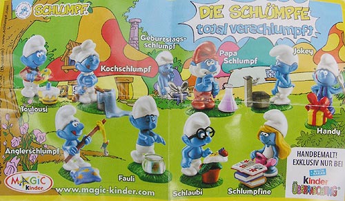 Morgen ist der offizielle Auslieferungsstart der Schlümpfe. Das es schon vor dem Auslieferungsstart die neuen Ü-Eier zu kaufen gibt, ist nicht ungewöhnlich. Die Herbstserie wird nicht so Punkt genau ausgeliefert wie die Nachsommerserie. In vielen Geschäften gibt es seit der letzten Woche die 72er Displays, hinzu kommen die 3er Packs der Schlümpfe. Im Laufe der kommenden Woche sollte es in allen Geschäften die Schlümpfe geben. Der Geburtstagsschlumpf ist sehr wahrscheinlich über den ganzen Zeitraum in den Schlumpf Eiern zu bekommen. Dies ist der BPZ vom Geburtstagsschlumpf. Der Geburtstagsschlumpf ist neben dem Schlumpfhaus abgebildet, wo bei den Serien BPZ eine Lücke ist. Der Untertitel der Schlümpfe "total verschlumpft" bezieht sich sehr wahrscheinlich auf den Sockel der Figur, wo - bis auf bei Papaschlumpf - der falsche Gegenstand steht. Auf eBay haben sich reichlich Auktionen der neuen Schlümpfe angesammelt [Live Suche auf eBay nach Geburtstagsschlumpf starten].