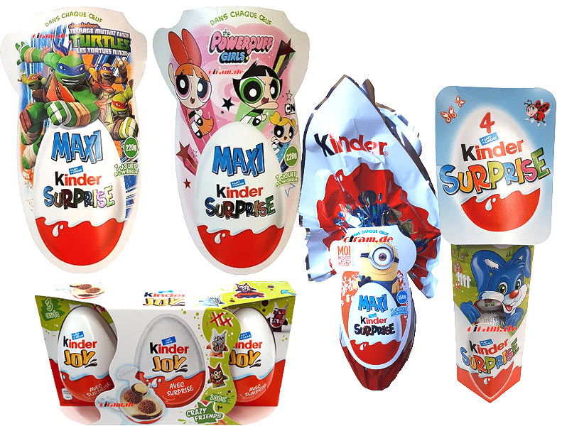Das Gruppenfoto zeigt das aktuelle Ü-Ei Sortiment aus Frankreich.