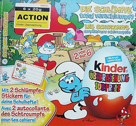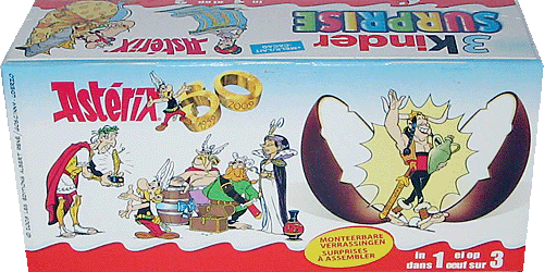 Dieses 3er Pack von Asterix gibt es in Holland. Zum 50 jährigen Asterix Jubiläum überreichen die Figuren Geschenke. In Belgien sind die Figuren im 6er Pack zu bekommen. Alle Bilder zur Serie im Eierlei [Preiskatalog]. Danke an Dina & Dietmar für die News Verschlumpft geht es in der Schweiz zu mit diesem 6er Pack. Genau genommen sind in dem 6er Pack zwei 3er Packs. Als kleiner Anreiz sind in jedem 6er Pack zwei Aufkleber für das Schulheft. Insgesamt gibt es 8 unterschiedliche Aufkleber.