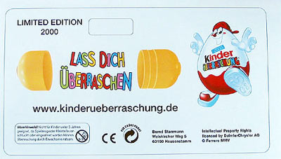 Das Bild zeigt uns eine farbige Blister Rückseite des kommenden Ü-Ei Trucks 2007. Oben links wird jeder der auf 2000 limitierten Trucks mit einer einmaligen Nummer von 0 bis 2000 abgestempelt sein. Die Rückseite ist eine Verbesserung des kommenden Ü-Ei Trucks. Leider sind diese Verbesserungen die Gründe, warum der voraussichtliche Auslieferungstermin Mai nicht gehalten werden kann. Die Auslieferung verschiebt sich nun um einen Monat. Einen genauen Termin gibt es noch nicht.