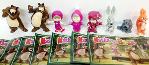 In Österreich gibt es diese 3er Packung von "Masha and the Bear". Es wird eine Figur der Serie garantiert. Der Satz besteht aus den 8 Figuren, die auf dem unteren Bild zu sehen sind. In Russland gab es den Satz 2012 und es waren 10 Figuren. Die Figuren sind nur zum Teil dieselben wie der Russland Satz. Jetzt im: [Eierlei Shop zu bekommen]. Quelle: [Diese eBay Auktion]