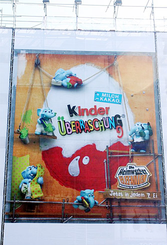 Diese Gerüstplane hängt in Köln. Sie geht über 4 Etagen und müsste dann über 10 Meter hoch sein. Ein echter Hingucker und das nicht nur für Ü-Ei Sammler. Es sind 5 Heimwerker Elefanten zu sehen. Das Bild haben wir unserem Facebook Auftritt zu verdanken. Danke an Andreas Klein für die News und das Bild. Gerne hätten wir noch mehr Leute, denen unser Auftritt auf Facebook gefällt. [Link zu unserer Facebook Seite]