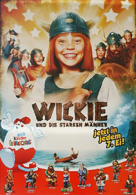 Dieses Poster von Wickie ist 29,5 cm x 42 cm groß. Neu ist, dass dieses Poster selbstklebend ist, wie ein riesen Aufkleber. Im Mittelpunkt steht natürlich Wickie, der gerade eine Idee hat. Zu erkennen an dem Finger und die Sterne im Hintergrund. Hinter Wickie sind alle Figuren, bis auf Congaz und der schreckliche Sven zu sehen. Unter dem Eiermann sind alle Figuren aus dem Ü-Ei abgebildet. Die erste Auktion: [Angebot bei eBay][Wickie im Eierlei Shop und vieles mehr]!