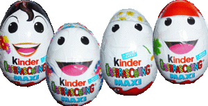 Seit einigen Wochen gibt es diese Maxi Eier als mit Kinderino Gesicht bei Real. Quellen sind diese eBay Auktionen: [Maxi Ei 1] [Maxi Ei 2] [Maxi Ei 3] [Maxi Ei 4].