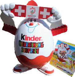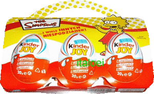 In der Schweiz ist dieser Eiermann erhältlich. Er ist mit 7 Ü-Eier bestückt. Auf dem Schal steht "EURO2008" [Diese eBay Auktion] Aus Polen kommt dieses Simpsons Kinder JOY 3er Pack. Eine Figurengarantie ist der Verpackung nicht zu entnehmen.
