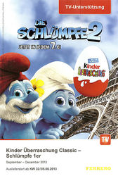 Dies ist das Cover von der Werbemappe der Schlümpfe 2. Zu sehen ist Papaschlumpf und Beauty. Im Hintergrund steht der Eifelturm. Auslieferungsstart ist der 05. 08. 2013. Die geöffnete Werbemappe der Schlümpfe zeigt die 9 Figuren der Serie mit Namen. Links sind die blauen Schlümpfe und rechts ist Gargamel und die zwei Lümmel Schlümpfe "Hibbel" und "Zicki" zu sehen. Am 01. 08. ist der Kinostart vom zweiten Teil der Schlümpfe. Zum deutschen Kinotrailer der [Schlümpfe 2 in HD].
