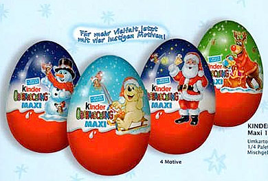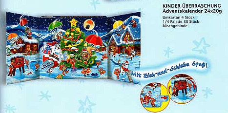 Die neuen Werbemappen von Ferrero sind raus und geben einen umfangreichen Einblick ins kommende Sortiment. Auf dem Hochkantbild rechts ist zu sehen, dass es zwei 4er Packs zu Helloween gibt. Auf diesem Bild ist der Adventskalender 2011 zu sehen. Als Serie scheinen es Rentiere zu sein. Ostern 2012 gibt es was Neues. Es ist ein 2er Pack Kinder Joy in einer passenden Umverpackung. Zu Weihnachten werden 100g Eier kommen in 4 Motiven. Alle Werbemappen in der Übersicht auf: osito99. de