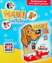 Diese Woche hat der Auslieferungsstart eines neuen 4er Packs begonnen. Es sind 6 Hundefiguren der Natoons. Name der Serie "WAU! Ganz schön schlau!". Pro 4er Pack gibt es wieder die Garantie für zwei Figuren pro Packung. Das 4er Pack gibt es in drei unterschiedlichen Layouts. Preis ist ca. 2,69 Euro pro Packung. In Eierlei Forum gibt es einen [Beitrag dazu]. Mehr Bildmaterial und die ersten Sätze jetzt auf [eBay].