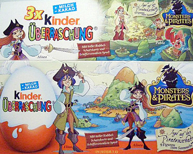 In Italien gibt es den neuen Pixie Satz in diesem 3er Pack. Es wird eine Figur pro 3er Pack garantiert. Die flauschigen Dinos scheinen als Nebenserie enthalten zu sein. Danke an Francesca Aus Österreich kommt dieses 3er Pack der Monsters & Pirates. Unten rechts auf der Schatzkarte steht: "Jagd auf den Piratenschatz, 9 Figuren zum Sammlen". In England sind die Piraten an Land gegangen. Das Bild zeigt den englischen BPZ. Quelle: [stefans-sammler-team. de]