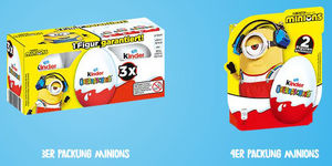 Die neuen Minons Figuren wird es zu dem normalen Kinder Überraschungsei noch in diesen Sonderpackungen geben.