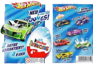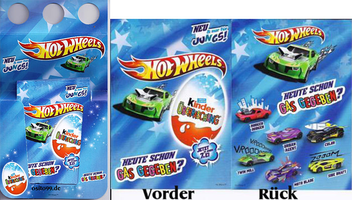 Wie bei der WinX Testware gibt es jetzt von den HOT WHEELS Testware. Das erste Bild zeigt uns eine Flyer Box. Rechts daneben ist der Flyer von beiden Seiten zu sehen. Neben den Einzeleiern gibt es dieses 4er Pack. Im 4er Pack werden 2 Autos garantiert. [Zu bekommen in dieser eBay Auktion]. Der Satz enthält 6 Flitzer. Mit dem blauen Design und dem Slogans ist klar, dass die HOT WHEELS für Jungen gedacht sind. Danke an Richart für die News