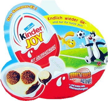 Vereinzelt ist in den Supermärkten dieser Palettenanhänger (PAH) anzutreffen. Der PAH zeigt "Das Sommer-Ei" sowie Tweety und Silvester. Über den beiden steht noch der Slogan "Endlich wieder da - und nur für kurze Zeit!". [Eierlei Bugs Bunnys im Shop]