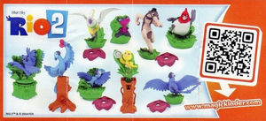 Hier ist das Diorama von Rio 2 zu sehen. Der Satz umfasst 9 Figuren. Die Figuren sind im Diorama, der wie ein Setzkasten aufgebaut ist. Die Vorderseite wird einfach runtergeklappt. Bei dem Beipackzettel unten sind noch mal alle Figuren zu sehen, aber es handelt sich hierbei um den italienischen Beipackzettel. [Live Suche auf eBay nach RIO 2 starten].