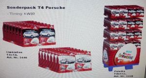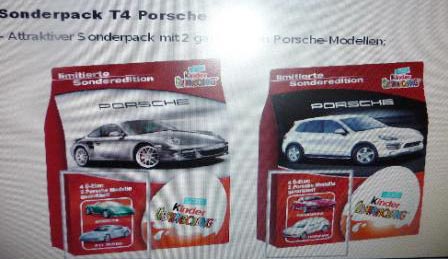 Kurz nachdem es in der Gerüchteküche gebrodelt hat, ist dieses Bidlmaterial im Eierlei Forum hochgeladen worden. Zu sehen sind vier Porsche Modelle. Als erstes ist ein grüner Boxster zu sehen. Daneben ein roter Panamera. Ein blauer Porsche 911 Turbo und der Cayenne. Bild und Neuigkeiten Quelle: Armin Das Bildmaterial ist nicht sehr gut, da hier wohl vom Monitor abfotografiert wurde - aber dafür hoch interessant ;-). Hier sind zwei Sonderverpackungen zu sehen. Es sind 4er Packs die aussehen wie Lunchpakete. Anscheinend werden zwei Modelle pro Sonderverpackung garantiert. In diesem Gebinde werden die 4er Packs ausgeliefert. Start der Auslieferung ist Mitte September (KW 37), also ca. einen Monat nach dem Serienstart der Heimwerker Elefanten. Gut möglich, dass die coolen Porsche Modelle auch in die Serien Ü-Eier kommen werden. Lassen wir uns überraschen.