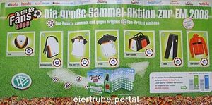 Dieser Werbeflyer verrät uns die Prämien zur EM 2008. Es werden wieder Punkte oder besser gesagt kleine Bälle zum Ausschneiden auf den Ü-Eiern oder anderen Ferrero Süßwaren sein. Das untere Bild zeigt die 7 Prämien. Sieht nach tollen Preisen aus!