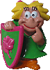 Die Funny Castle Serie besteht aus 13 Figuren. Der Titel der Serie lautet "Das königliche Turnier". Um die Figuren vorzustellen wurden sie in drei Gruppen unterteilt. Dies sind die 4 Schildknappen namens Schildträger Willi, Schildknappe Annabella, Schildknappe Hubertus und Schildknappe Eddi. Alle Figuren bestehen aus einem Stück. Die Namen der fünf Ritter wieder von links nach rechts: Friedhelm Freiherr von Zahnstein, die schwertschwingende Amazonia, Ritter Olaf der Grimmige, Ritter Dietmar vom kühlen Blech und Ritter Rüdiger von Büchsenberg. Alle Figuren bestehen aus drei Teilen, bis auf Ritter Dietmar, wo nur das Schwert lose ist. Jetzt wo man die Ritter so unter den Knappen sieht fällt schnell auf, dass anscheinend die vier Knappen die Schildträger der 4 darunter befindlichen Ritter sind, da die Ritter alle kein Schild haben und die Farben zusammengehören. Nur bei Ritter Rüdiger nicht, wohl wegen seiner kompletten Ritterausrüstung. Das Spielzeug zur Serie kann ebenfalls farblich zu den Ritter und Knappen zugeordnet werden (das Zelt, das Pferd und die Kutsche). Vielleicht wir uns ja die DVD aus der Burgensonderverpackung mit dem 20 minütigen Funny Castle-Cartoon mehr dazu verraten. Hier die restlichen vier Figuren der Serie: Das Burgfräulein Mathilde von Maienglock, Gustl Kammerdiener des künftigen Königs, Zaubermeister Magnus und Hex Grimmalda. Abgesehen von den Figuren gibt es noch reichlich Spielzeug zu der Serie. Dies ist ein Ausschnitt von einem Werbeblatt, welches einen Aufsteller der Burgsonderverpackungen der Funny Castle zeigt. Wir hatten zwar schon über die Burgsonderverpackung berichtet, aber wir können jetzt sagen, dass tatsächlich 3 Figuren pro Sonderpack enthalten sein werden. Wir befürchten allerdings, dass die Sonderverpackung mit 6 Ü-Eiern wieder relativ teuer sein wird gegenüber dem einzelnen Ü-Ei. [Funny Castle Figuren jetzt im Ü-Ei Shop auf Eierlei] Quelle: www. eierplanet. de