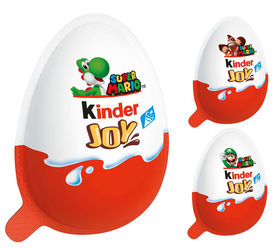 Das Bild zeigt uns die 3 Super Mario Motive auf dem Kinder Joy Ei. Hierbei sollte beim Kauf geachtet werden, da es auch die normalen Kinder Joy Eier gibt, wo keine Super Mario Inhalte drin stecken.