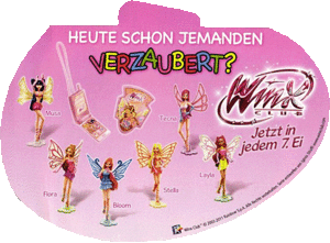 In Trier gab es ja diesen Aufsteller mit den Winx Eiern, sogenannte Testware und dazu passend auch einen Palettenanhänger. Auf dem Palettenanhänger sind alle 6 Figuren sowie zwei Spielzeuge abgebildet. [Mehr dazu in diesem Forum Beitrag] [Jetzt auf eBay zu bekommen]!