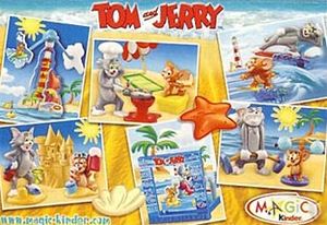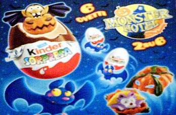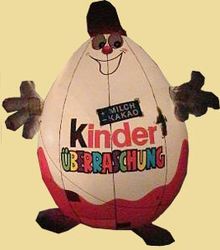 Das Bild zeigt uns einen 3 Meter hohen Eiermann. Das Foto wurde Nachts geschossen, deswegen sind die Hände, Füße und Mütze so dunkel. Der Eiermann soll aus Italien kommen, obwohl "Kinder Überraschung" drauf steht. Im Eiermann ist eine Lampe und Luftpumpe integriert. Leider kann so ein Foto nicht die Dimensionen von 3 Meter Höhe und 2 Meter Breite wiedergeben. [Mehr dazu in dieser Auktion] In der Ukraine gibt es eine Neuauflage von Tom und Jerry. Die Figuren sind in den Kinder Joy Eier. In Italien wird es grusselig mit diesem 6er Pack Halloween. Zwei Halloween Inhalte werden garantiert.