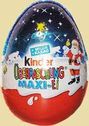 Das Bild zeigt uns ein neuartiges 15cm hohes Maxi Ei. Die Verpackung ist wieder gespannt, so wie bei den Testverpackungen von Ü-Eiern oder der Christbaum Kugel. In den Maxi Eiern sind ebenfalls die Baby Loony Tunes in "Mini Gran Sorpresas" Kapseln. Es handelt sich hierbei um Testware aus Luxemburg genau wie die Christbaum Kugel.
