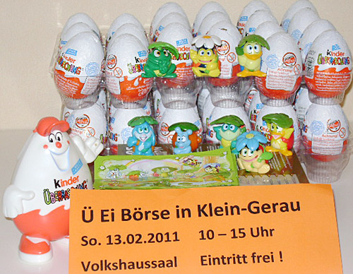 Die Auslieferung der Regenbogenstrolche in Deutschland hat begonnen. Die Ü-Eier sind mit Sammelpunkten versehen. Der Satz besteht aus 8 Figuren. Die Blätter sind abnehmbar und auf dem Rücken sind kleine Plastikknöpfe, mit denen man bei abgenommenen Blatt Wasser in die Figuren pumpen kann. Das Wasser wird dann durch eine sehr kleine Öffnung in den Blättern nach oben gespritzt.