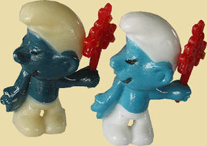 In der letzten Zeit ist ein wahrer Boom über die dunkelblau bemalten Schlümpfe ausgebrochen. Unsere Suche nach den Top Varianten auf der größten Ü-Ei Börse (Dreieich) hat ergeben, dass nur zwei Händler je einen dunkelblauen Schlumpf anbieten konnten. Im SU Katalog sind die dunkelblau bemalten Schlümpfe schön länger aufgelistet. Warum es erst jetzt zu dem Boom kommt ist fraglich. Vielleicht ist ein Grund der Setzbaukasten Bericht der eindeutig belegt hat, dass dort der Nachtwächter in dunkelblauer Bemalung im Setzbaukasten war. Am häufigsten sind die dunkelblau bemalten Schlümpfe in Auktionen zu finden. Aber Vorsicht, es hat nicht lange gedauert, da wurden schon Fälschungen angeboten oder Schlümpfe die minimal dunkler sind, aber nichts mit den wirklich kostbaren dunkelblau bemalten Schlümpfen zu tun haben. Zum Empfehlen ist bei bekannten Händlern die dunkelblauen Schlümpfe zu kaufen. Geplant ist auf Eierlei ein sehr umfangreicher Schlumpf Bericht, der so ziemlich alle Varianten von jeder Figur vorstellen wird. Im Eierlei Shop können wir momentan die beiden auf den Bildern zu sehenden dunkelblauen Schlümpfe anbieten. Neben den dunkelblauen Schlümpfen gibt es noch weit über 100 andere Varianten zu kleinen Preisen. An aktuellen Figuren bieten wir die ganze Bandbreite an: Magic Sport, WinX Club Figuren, Astro Generation usw. Über 1550 Ü-Ei Artikel, wovon 150 Sonderangebote dabei sind. Reinschauen lohnt sich! [Zum Shop] [Zu den Magic Sport Figuren] [Zu den Sonderangeboten] [Zu der Raritäten Rubrik]
