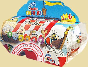 Auf der Vorderseite des ausländischen Shrek BPZ sind keine Namen der Figuren, nur Nummern. Die Rückseite zeigt fünf Figuren der Serie. Das Bild zeigt ein Mini Diorama aus Hong Kong. Ausgestellt sind Figuren vom Monsterhotel und Tom & Jerry. Quelle: [Diese eBay Auktion] Die Wikinger sind jetzt in Russland auf Beutezug. In dem 6er Pack sind garantiert 2 Asterix Figuren. Das Bild rechts zeigt ein 6er Pack aus England. Das Bild zeigt ein 4er Pack der Grillen aus Spanien. Auf der Rückseite ist noch ein "Schmuse Gorilla" zu sehen. Quelle: [die eBay Auktion] Das 6er Pack von Asterix ist ebenfalls aus Spanien. Auch hier werden 2 Figuren garantiert. Danke an Gogoei für die News