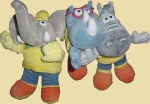 Der Eiermann Regalstreifen kommt aus Australien. Auf der rechten Seite ist ein Beach Ball Spiel von Mission Talpa aus Italien. Auf dem Schläger ist das Motiv von Sunny Valentine zu sehen. In Brasilien gibt es die Magic Sport Figuren. Als Promo Material gibt es diese drei Figuren als Plüsch Figuren. Bei Elfantino, Zee Rhino und Zele Zebrinos handelt es sich ums gelbe Team im Brasil Look. In Frankreich gibt es als neue Serie die "Ca rigole à I\'école!". Die beiden Bilder zeigen die ein dreier Pack von Vorne und hinten.