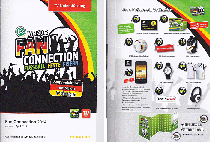In der 52. KW startet eine neue Punkte Sammelaktion von Ferrero, die bis zum April 2014 läuft. Die Werbemappe rechts zeigt die Prämien. Alles nach dem Motto "Jede Prämie ein Volltreffer". Auf jedem Ü-Ei soll, wie in der Vergangenheit, ein Sammelpunkt drauf sein, der ausgeschnitten werden kann.