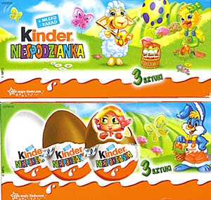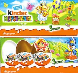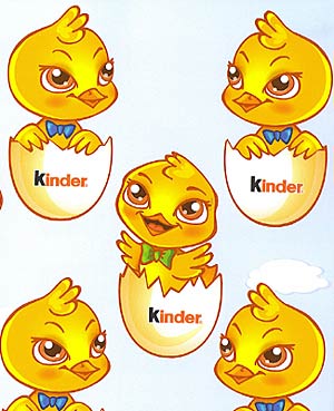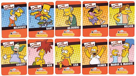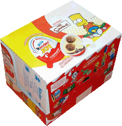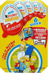 In der Ukraine gibt es die Simpsons in diesem 72er Kinder JOY Display. Das rechte Bild zeigt ein 6er Pack Simpsons aus Italien. Ein 6er Pack Merenderos kostet 5,06 Euro. Aus Italien kommen die 10 Simpsons Karten. Von jeder Figur gibt es eine Karte mit Namen der Figur. Am Ende der Karte steht noch "Kinder Merendero". Danke an Maurizion für die News. Aus Polen kommt dieses 3er Pack. Danke an Manfred H. In Tschechien gab es eine ganze Bastelmappe mit niedlichen Osterkücken von Ferrero.
