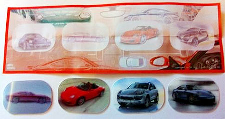 Auf dem Bild ist der BPZ zu den Porsche Wackelbildern zu sehen und darunter die vier unterschiedlichen Wackelbilder. Damit gibt es zu jedem Porsche Model ein Wackelbild. Zu bekommen in [dieser Auktion].