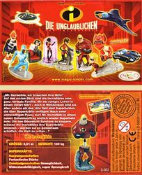 Das Design des BPZ ist wie alles von den Unglaublichen in einem unglaublich intensivem Rot gehalten. Die Vorderseite der BPZ ist immer die gleiche, sie zeigt alle 8 Figuren der Serie plus den drei Fahrzeugen. Auf der Rückseite des BPZ im linken oberen Teil ist eine kurze Geschichte, die auf jedem BPZ die gleiche ist. Darunter befindet sich der Name der Figur und in dem Kasten steht Größe, Gewicht, Superkräfte und die Zusatzeigenschaften von jedem Charakter.